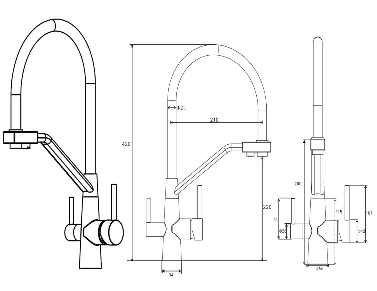 Unsere Fiora ist eine klassisch schöne 3-Wege-Brausearmatur aus hochwertigem Edelstahl und passt ideal zu dem Einbaufilter Base. Der Auslauf ist bogenartig geführt. Es gibt getrennte Ausläufe für normales Wasser (Einhebelmischer) sowie gefiltertes Wasser. Beide Ausläufe lassen sich separat voneinander bedienen. Fiora ersetzt deinen bestehenden Wasserhahn ohne zusätzliche Bohrung in der Arbeitsplatte.