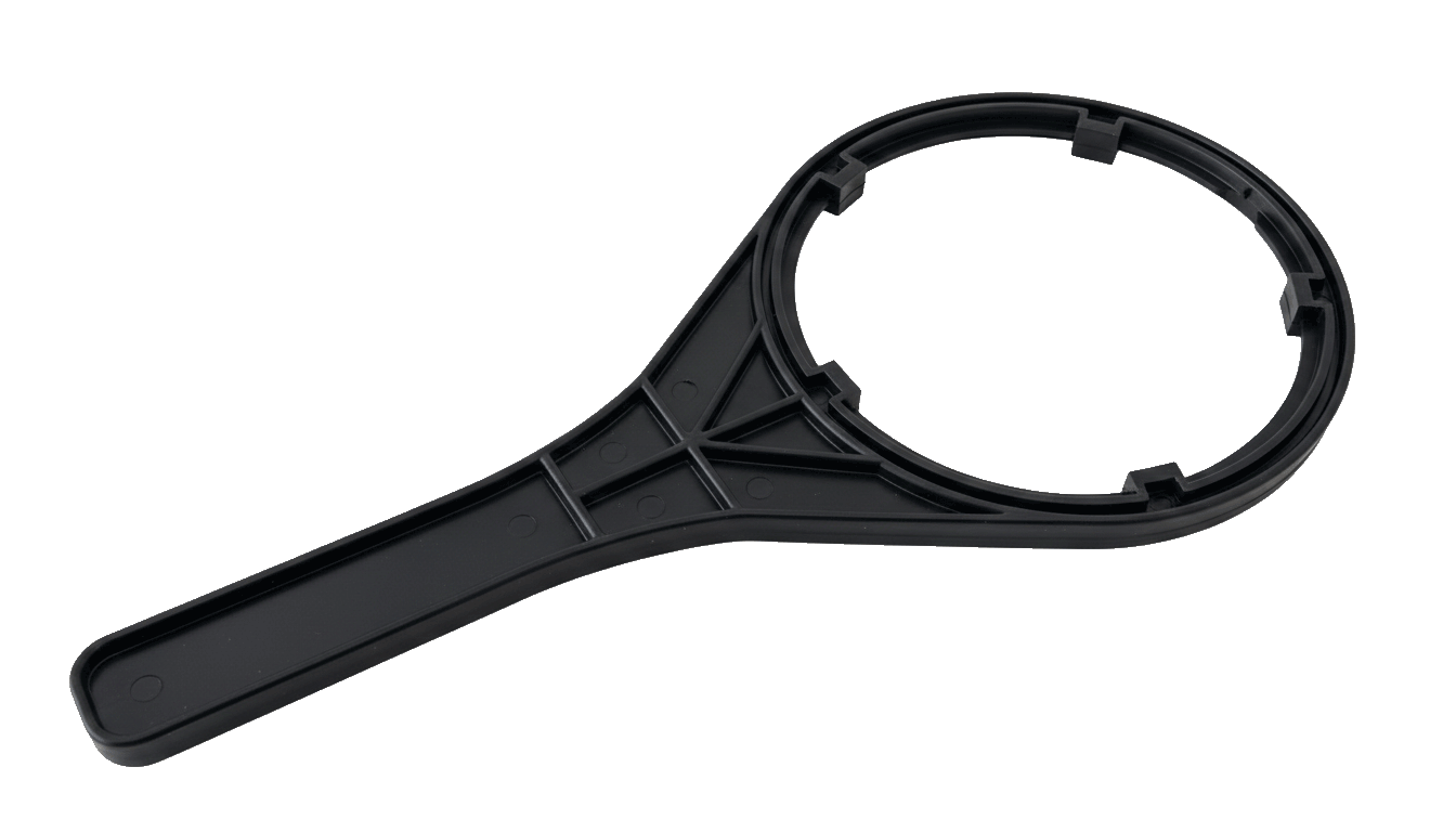 Montageschlüssel für unseren Untertischfilter Base mit dem weißen Filtergehäuse.