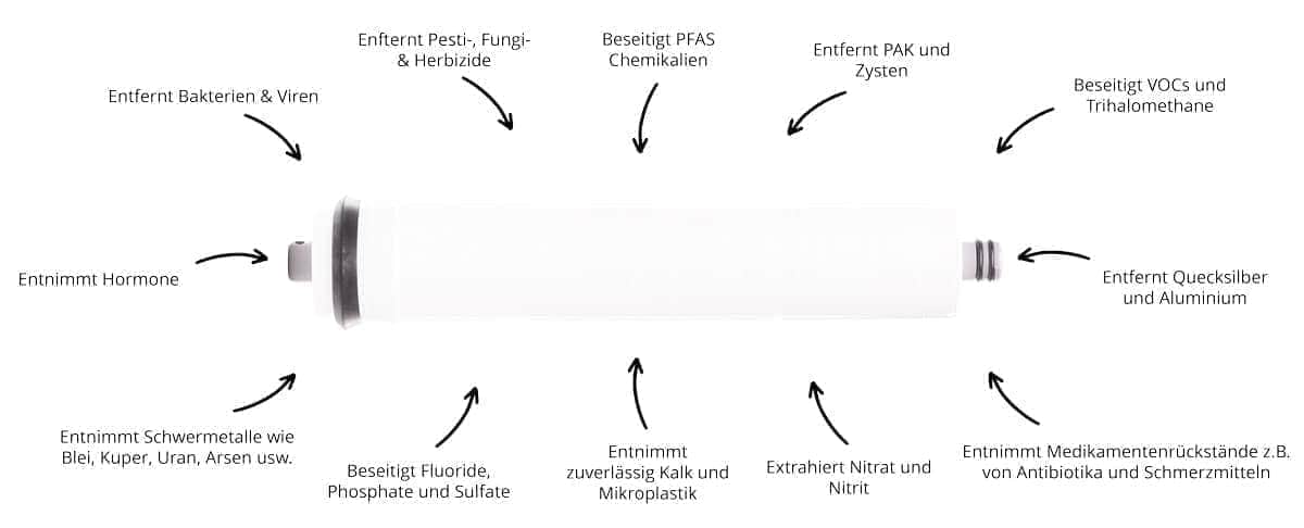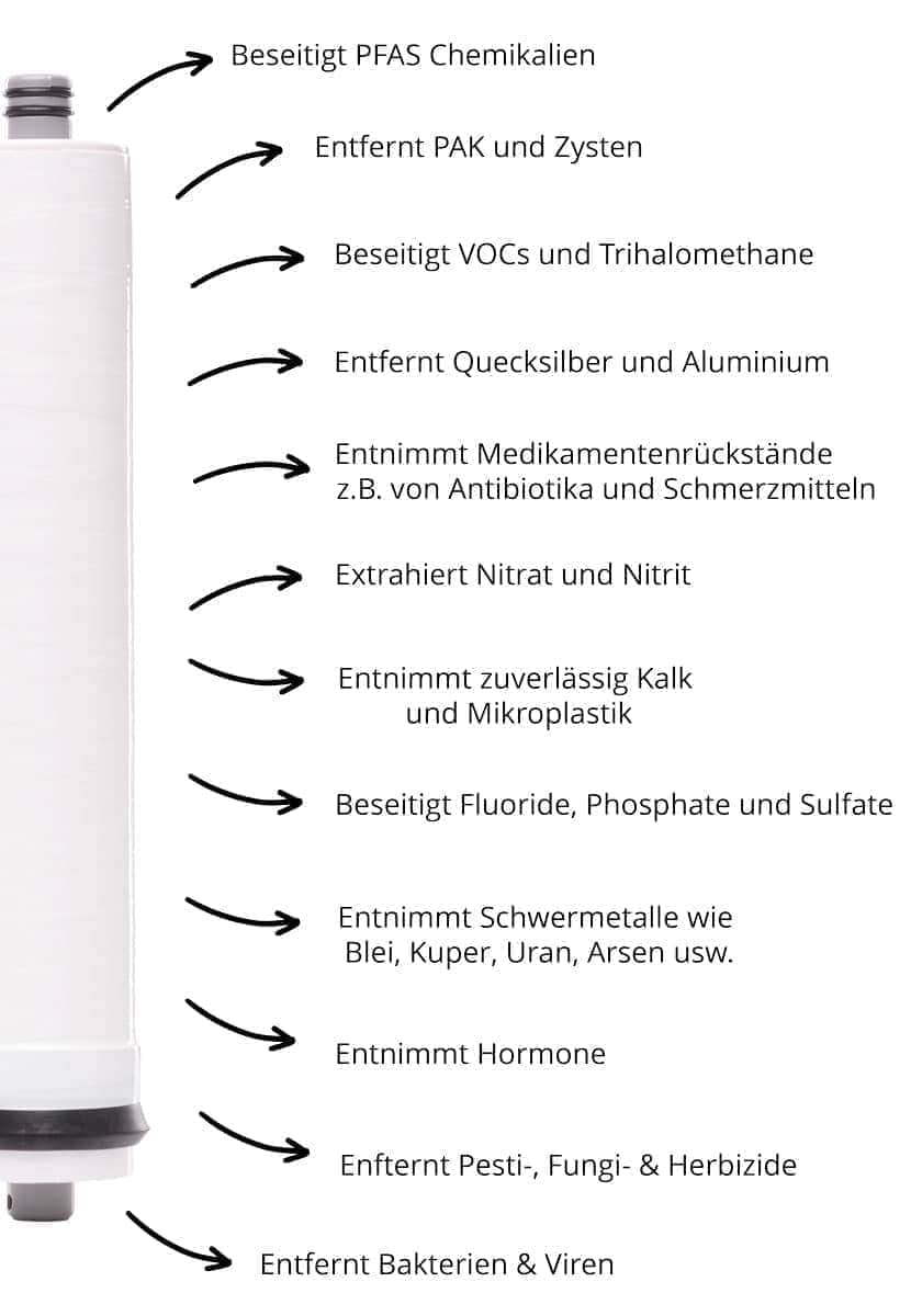 Um eine Kontaminierung deines Wassers durch die Membranen auszuschließen, werden nur hochwertigste Rohstoffe verarbeitet und die Prozesse streng kontrolliert.