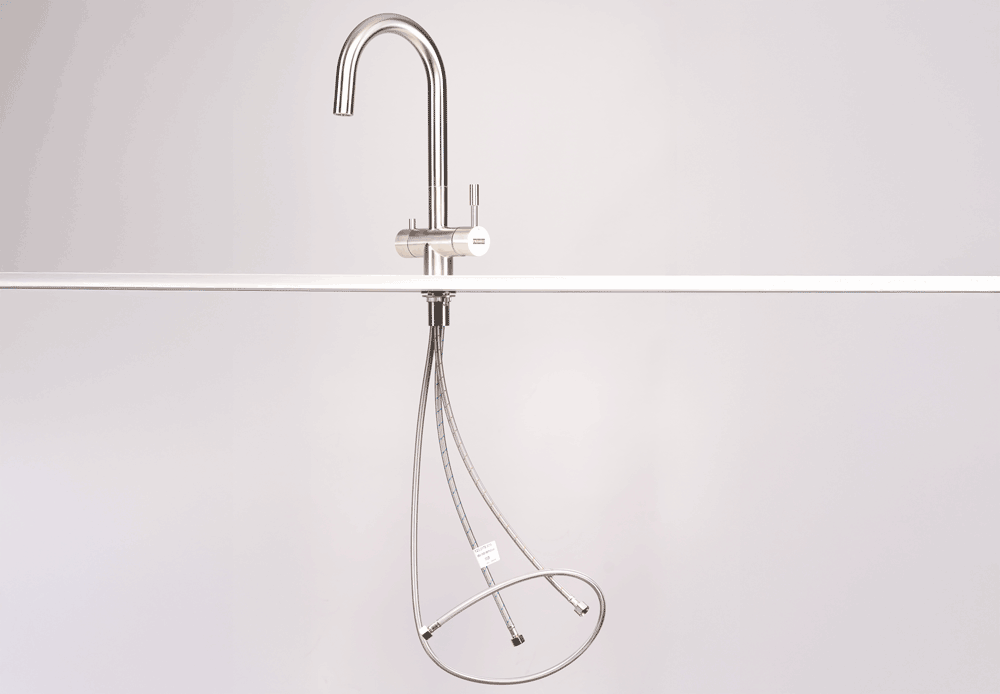 Heißes und kaltes Leitungswasser sowie gefiltertes Trinkwasser komfortabel über eine Armatur. Mit eigener dritter Leitung für das Filterwasser.