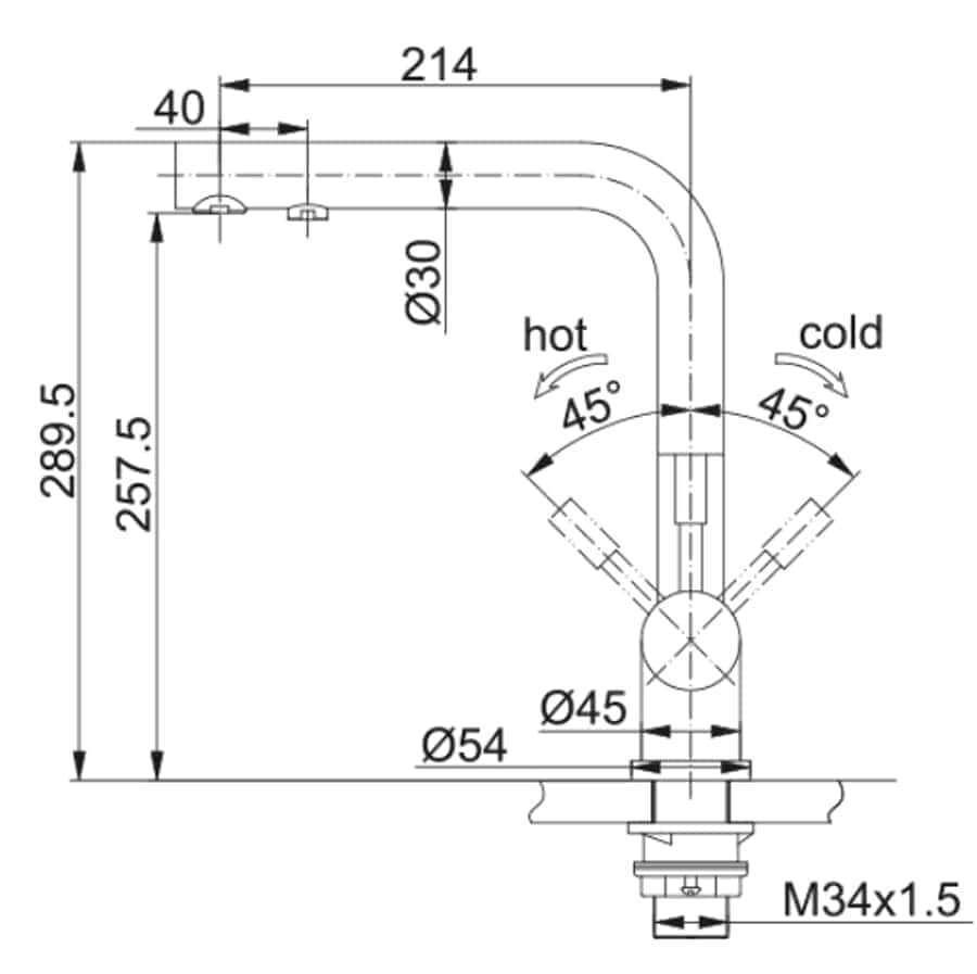 normale Höhe des Wasserhahns: ca. 289.5mm